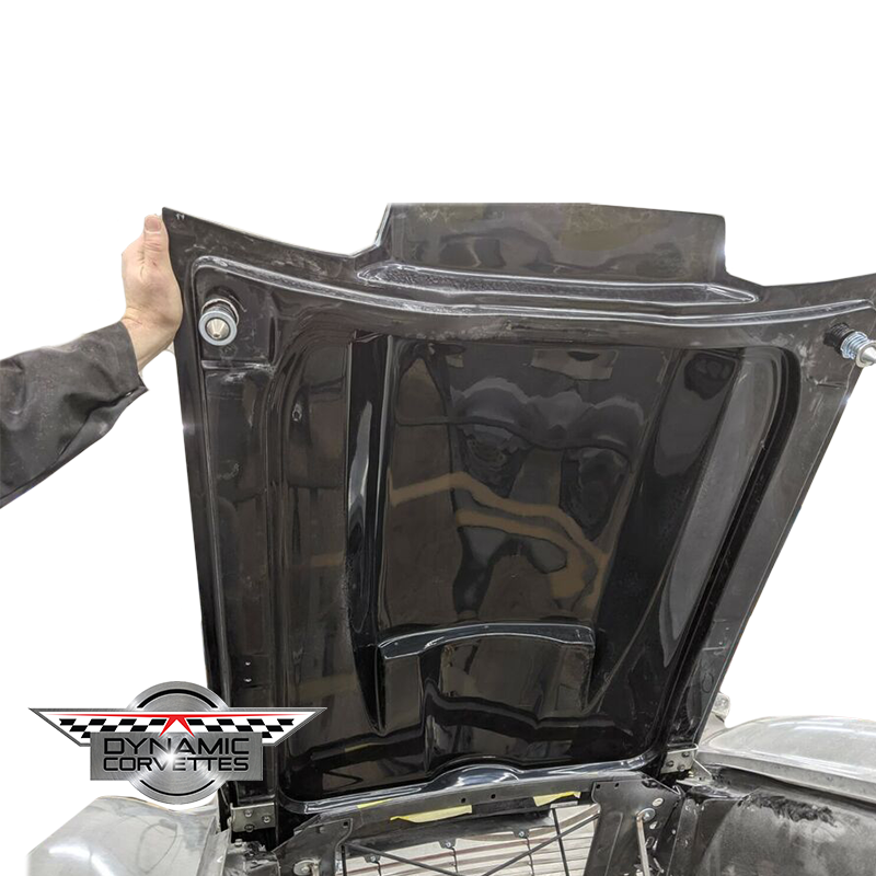 This hood offers more clearance. Please watch the videos below for the differences. This hood will be finished on the backside and will have provisions built in for the original hinges, latches and hood support for both driver and passenger side.